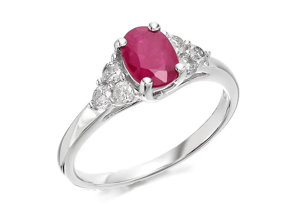 9ct White Gold Oval Ruby And Diamond Ring - 30pts - D63114
