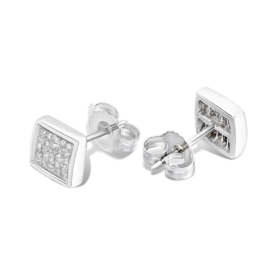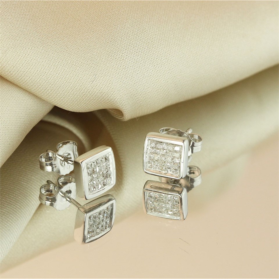 9ct White Gold Pave-Set Diamond Square Stud Earrings, 1/4ct/pr - D5557