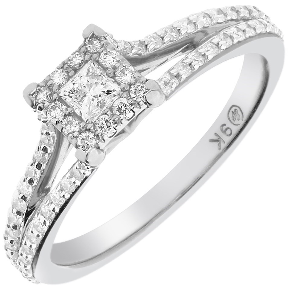 9ct White Gold Princess Cut Diamond Cluster Ring - 54pts - X10258