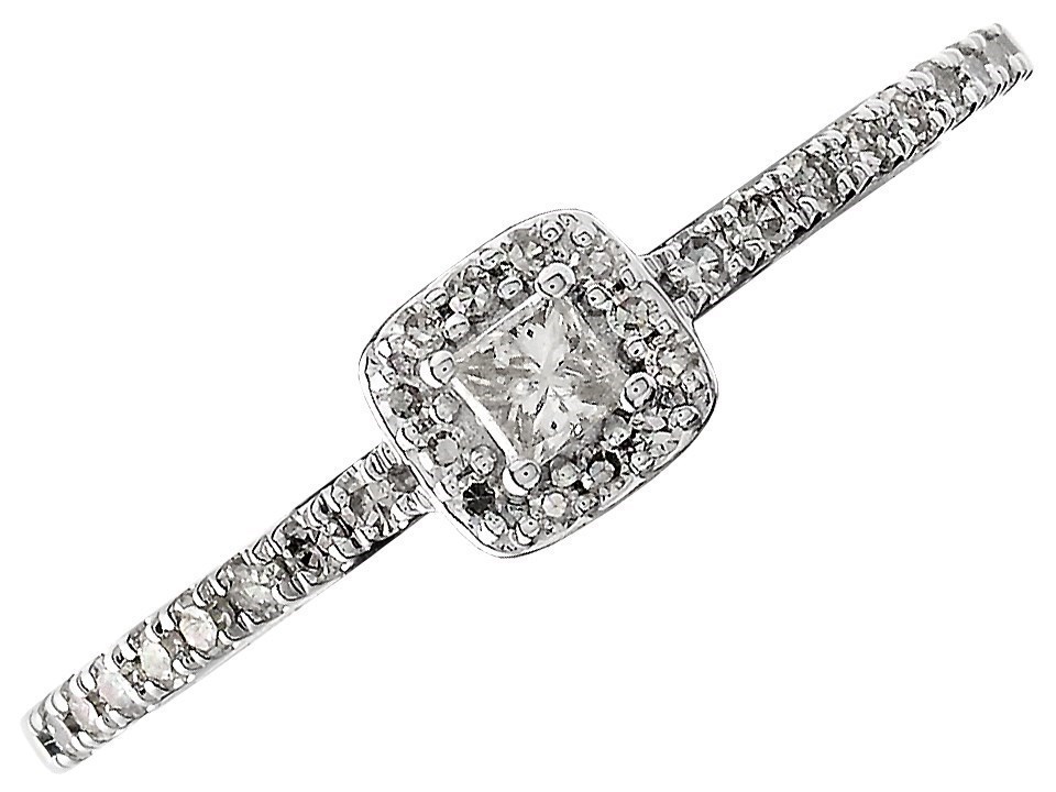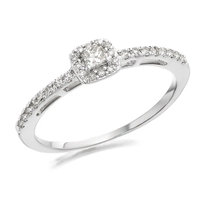 9ct White Gold Princess Cut Diamond Halo Cluster Ring - 1/4ct - D6891