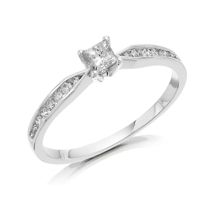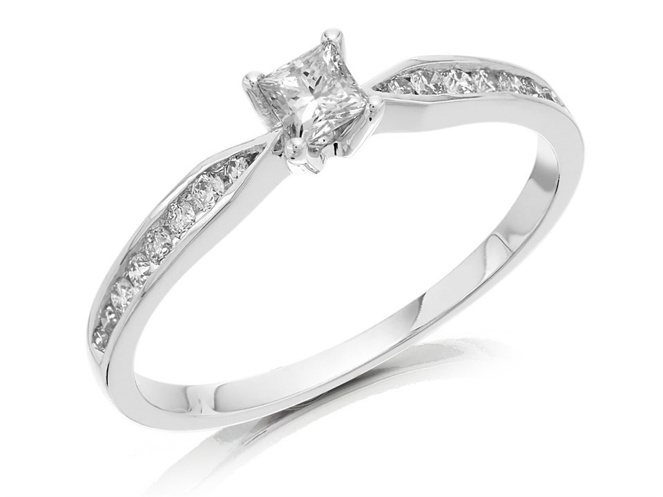 9ct White Gold Princess Cut Diamond Ring - 1/3ct - AGI Certificated - D71172