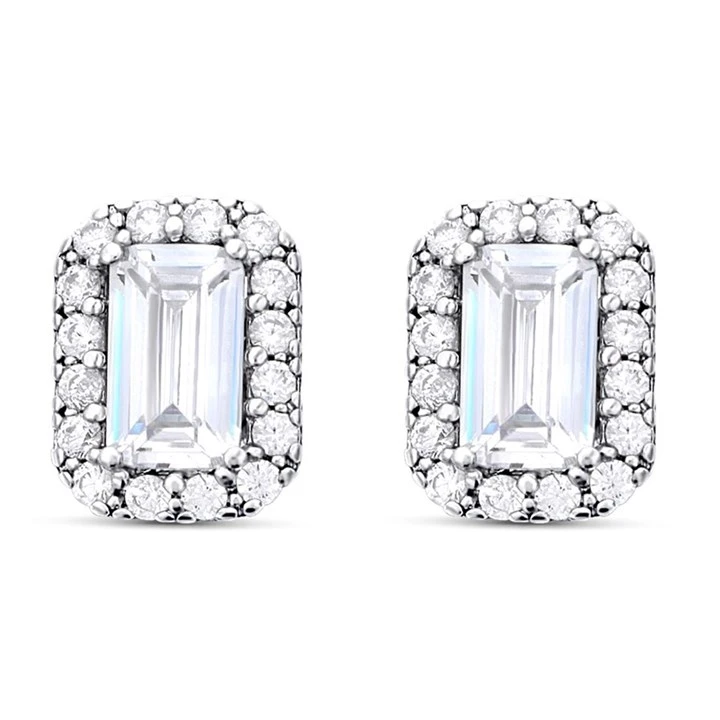 9ct White Gold Radiant Cubic Zirconia Cluster Stud Earrings - 7mm - G2787