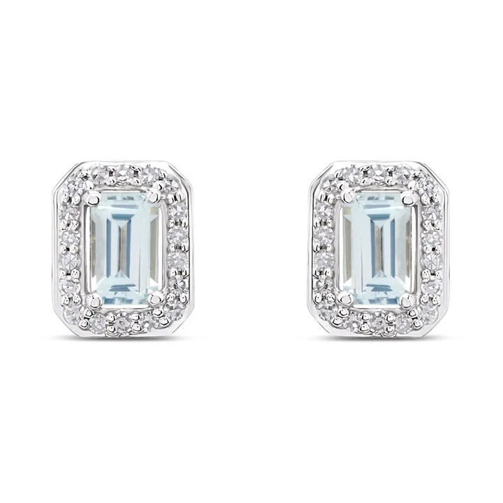 9ct White Gold Rectangular Aquamarine And Diamond Stud Earrings - D94136