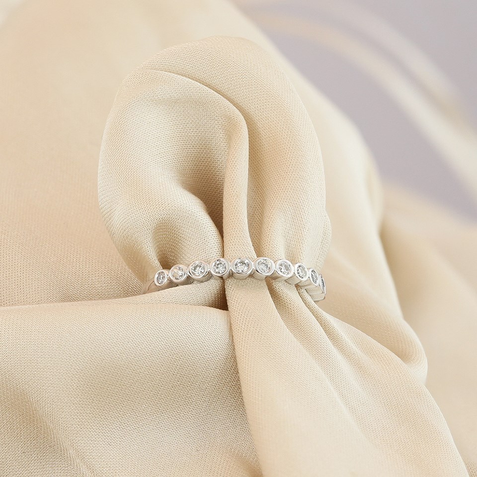 9ct White Gold Rubover-Set Diamond Half Eternity Ring - D71243
