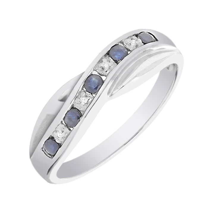 9ct White Gold Sapphire And Diamond Crossover Half Eternity Ring - X10531-O