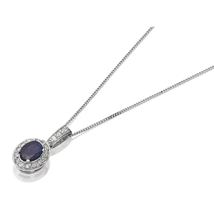9ct White Gold Sapphire And Diamond Necklace - 8pts - D95138