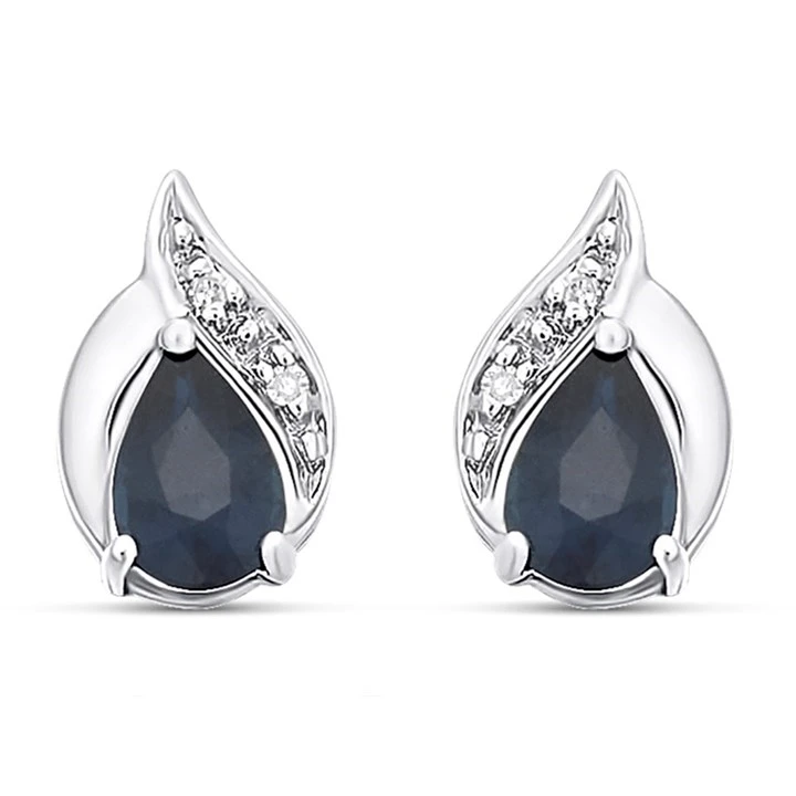 9ct White Gold Sapphire And Diamond Stud Earrings - 10mm - G0327