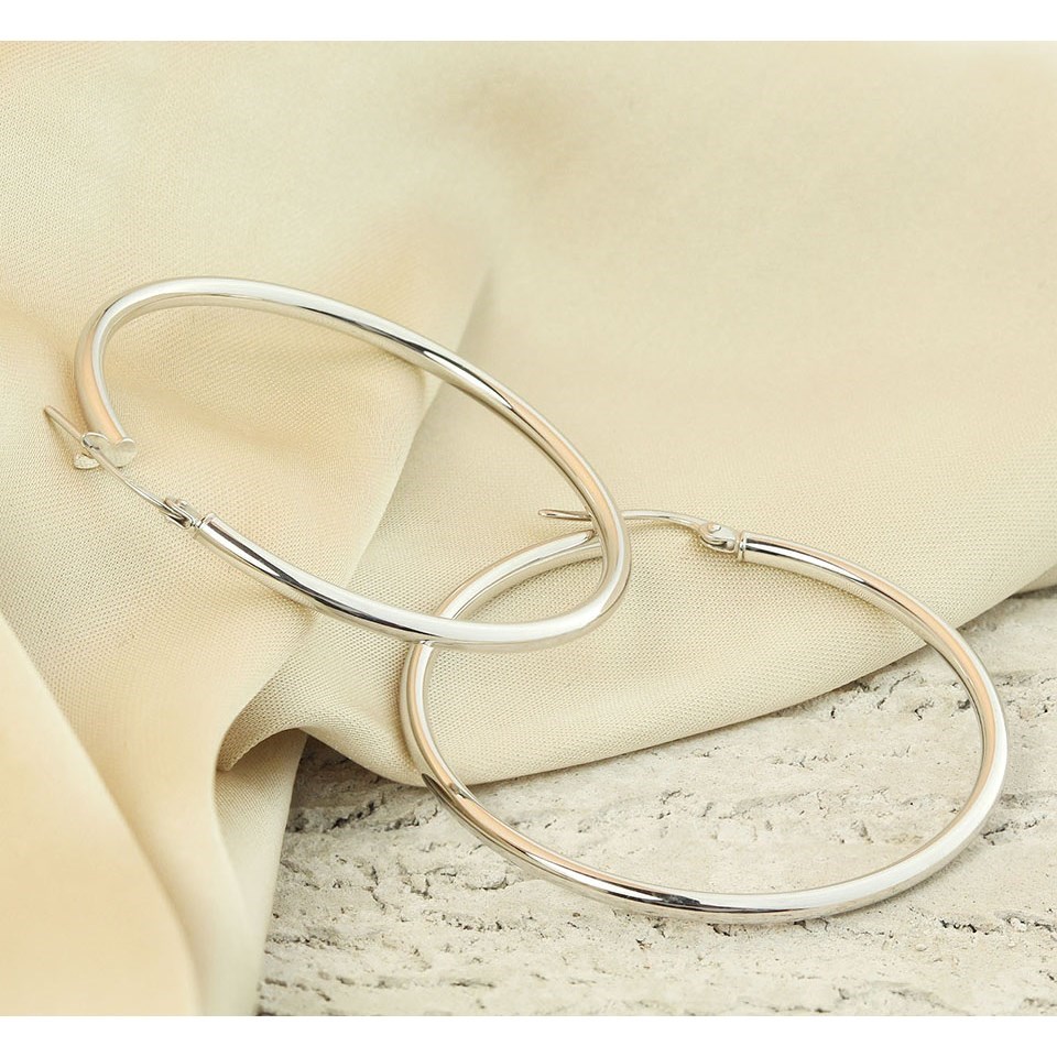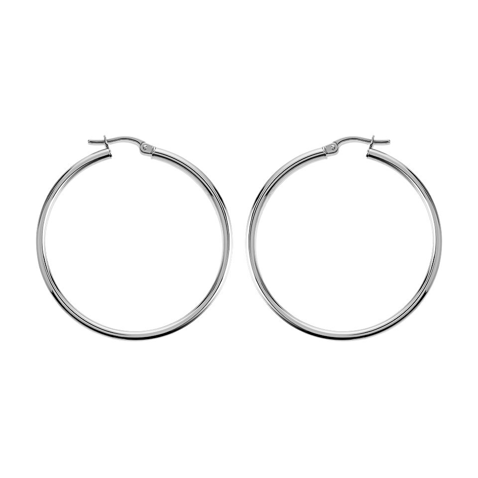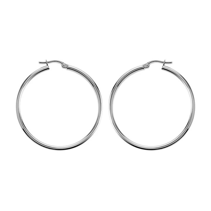 9ct White Gold Tube Hoop Earrings - 37mm - G41128