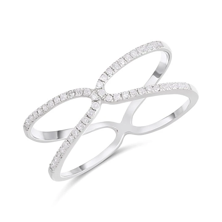 9ct White Gold Wide Open Diamond Crossover Ring, 15pts - D72149