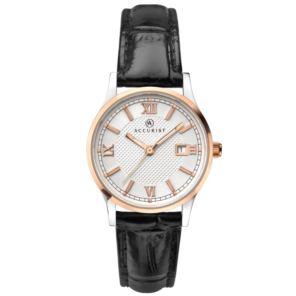 Accurist 8249 Rose Gold Plated Black Leather Strap Watch - W72153