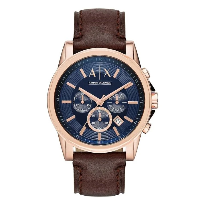 Armani Exchange AX2508 Rose Gold Plated Brown Leather Strap Watch - W6223