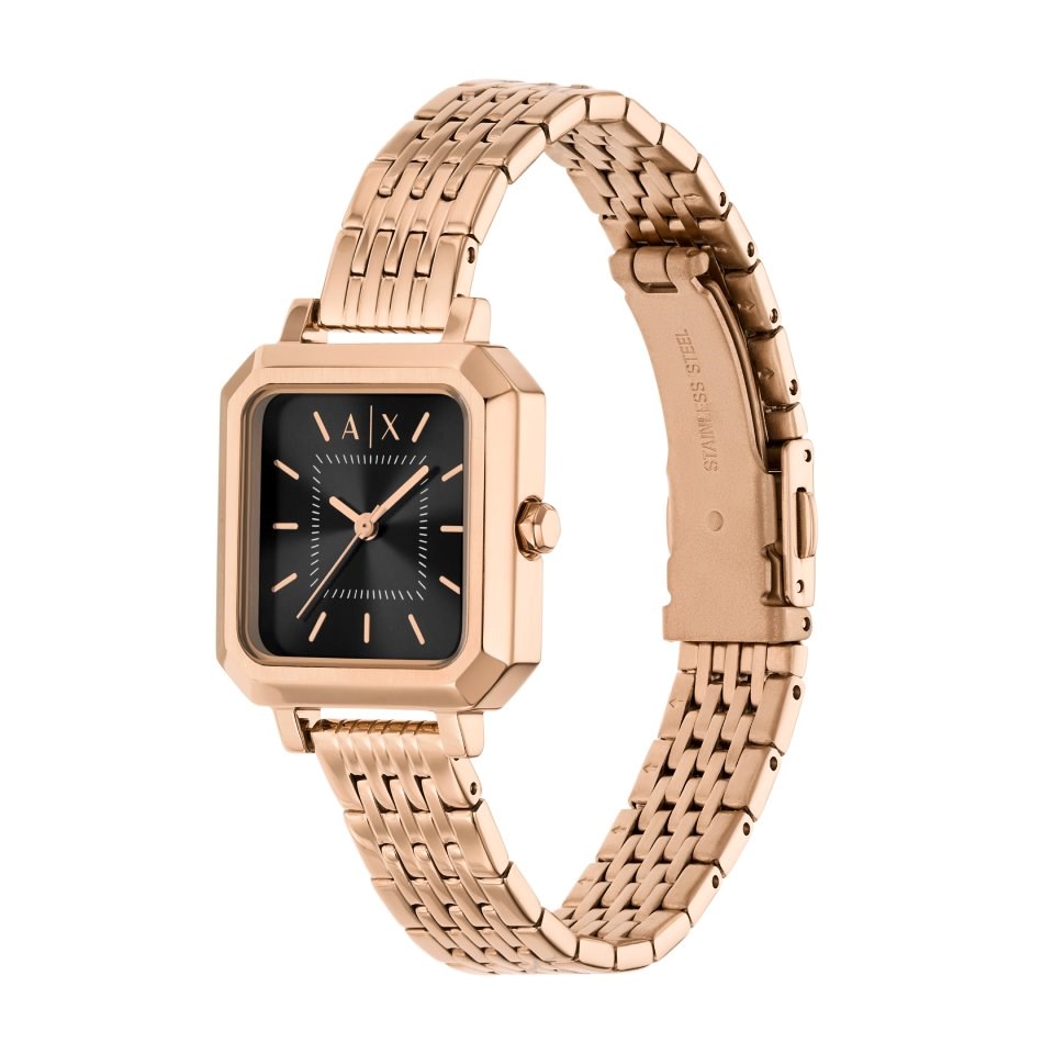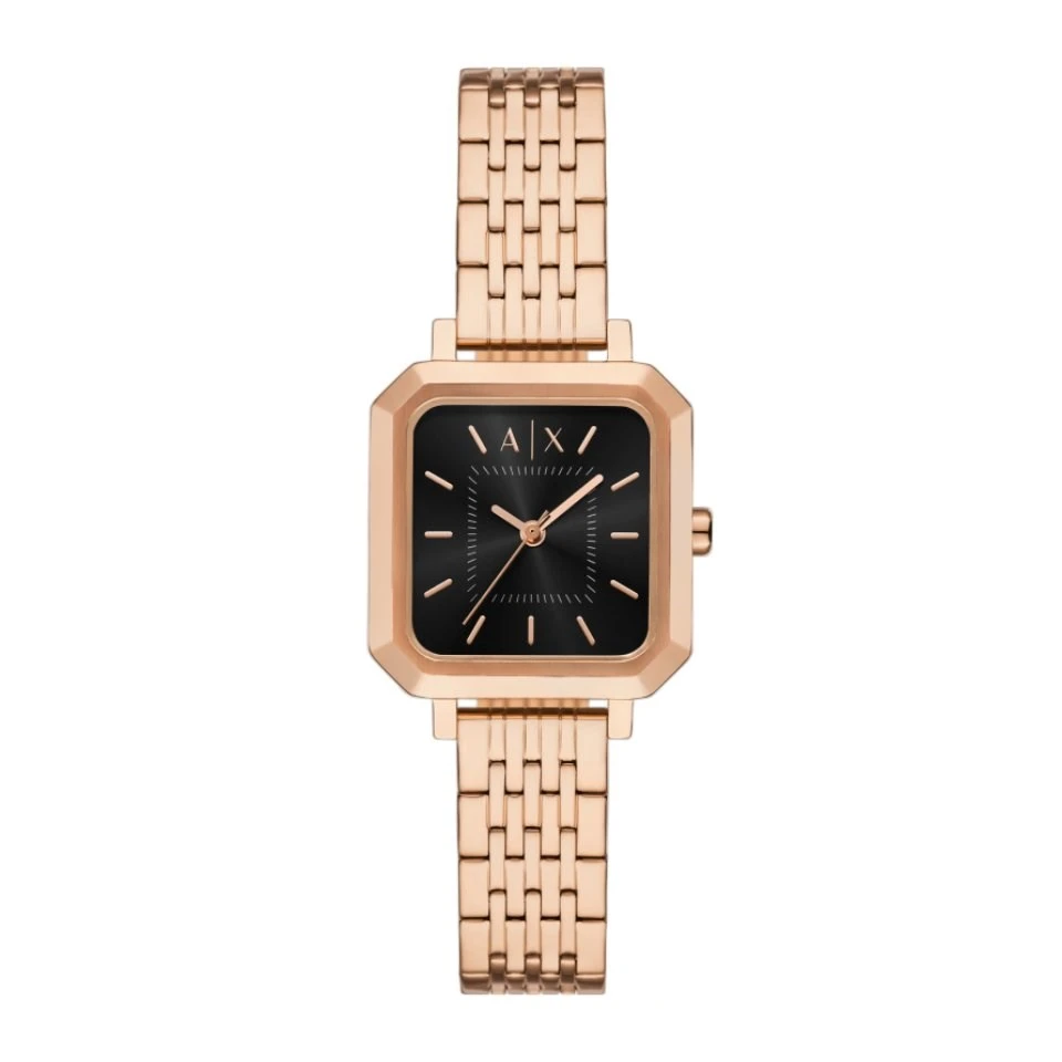 Armani Exchange AX5729 Rose Gold Tone Square Case Black Dial Bracelet Watch - W65550