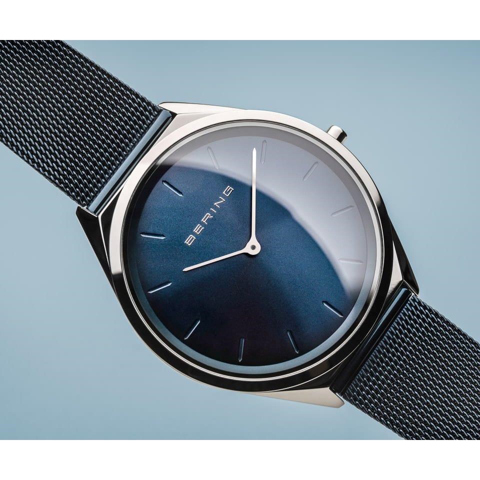 BERING 17039-307 Ultra Slim Blue Milanese Mesh Bracelet Watch - W74130