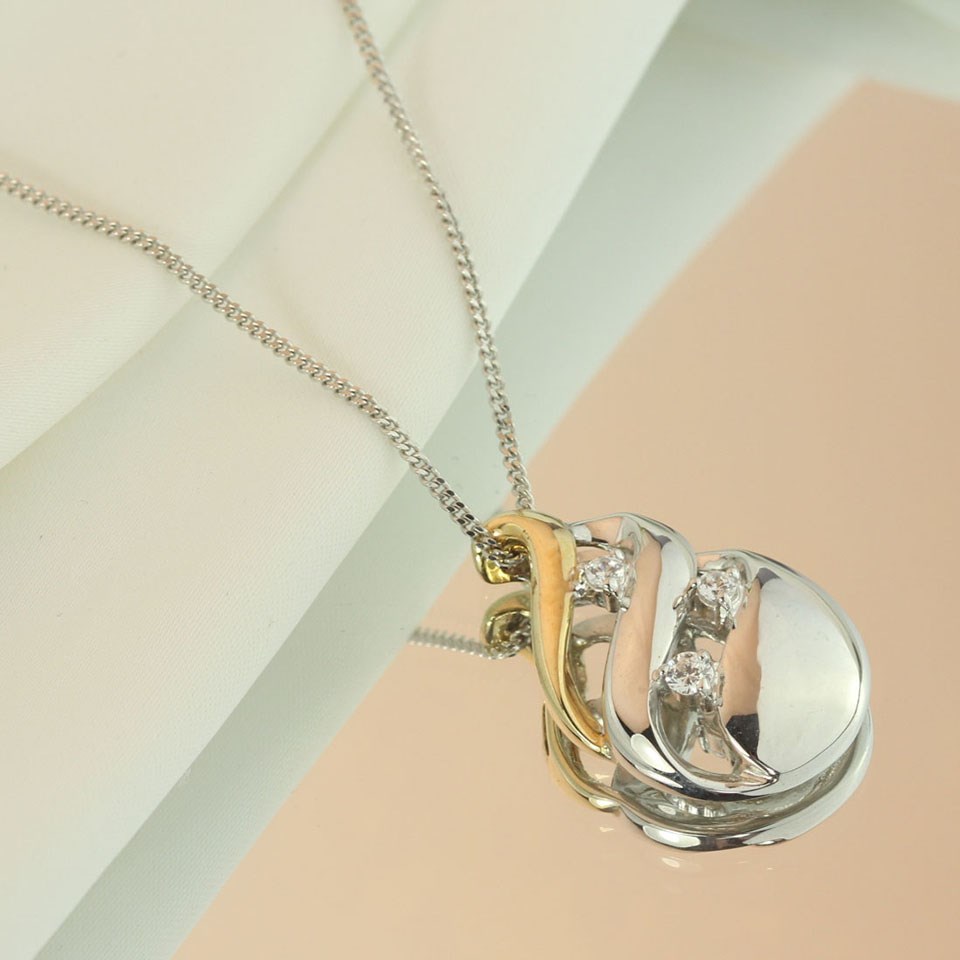 Bonded Silver And 9ct Gold Cubic Zirconia Teardrop Necklace - M3032