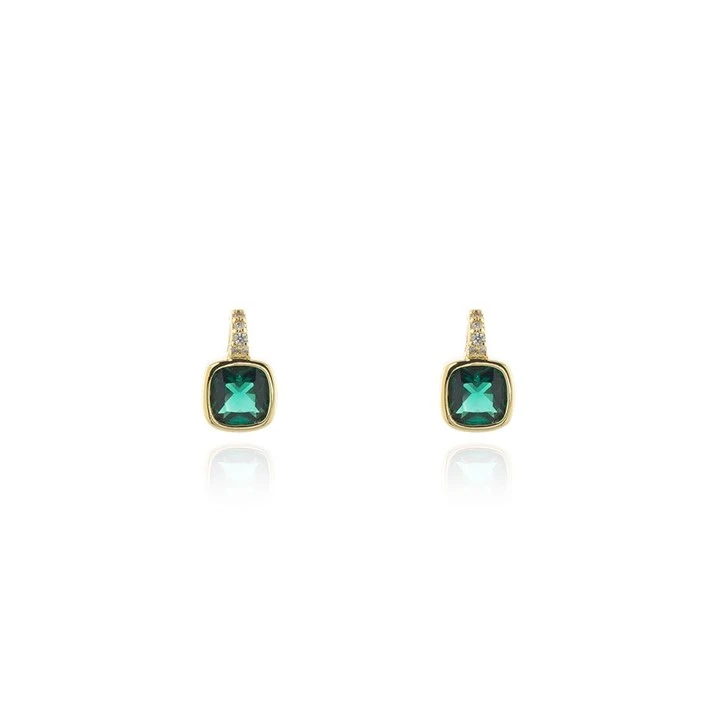 Cachet London Gold Tone Green Crystal Cushion Earrings - J74152
