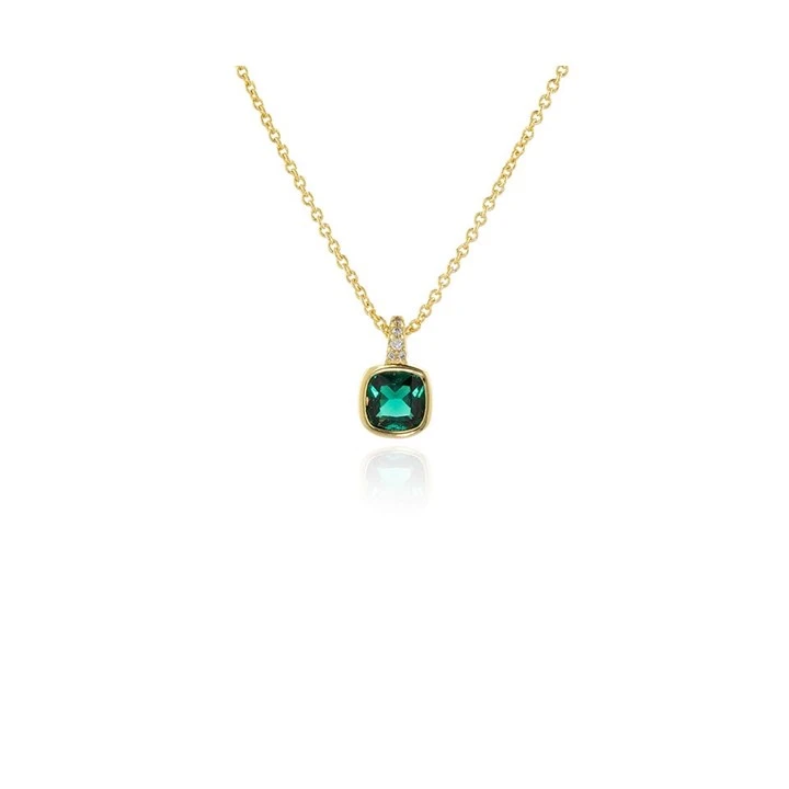 Cachet London Gold Tone Green Crystal Cushion Necklace - J74151