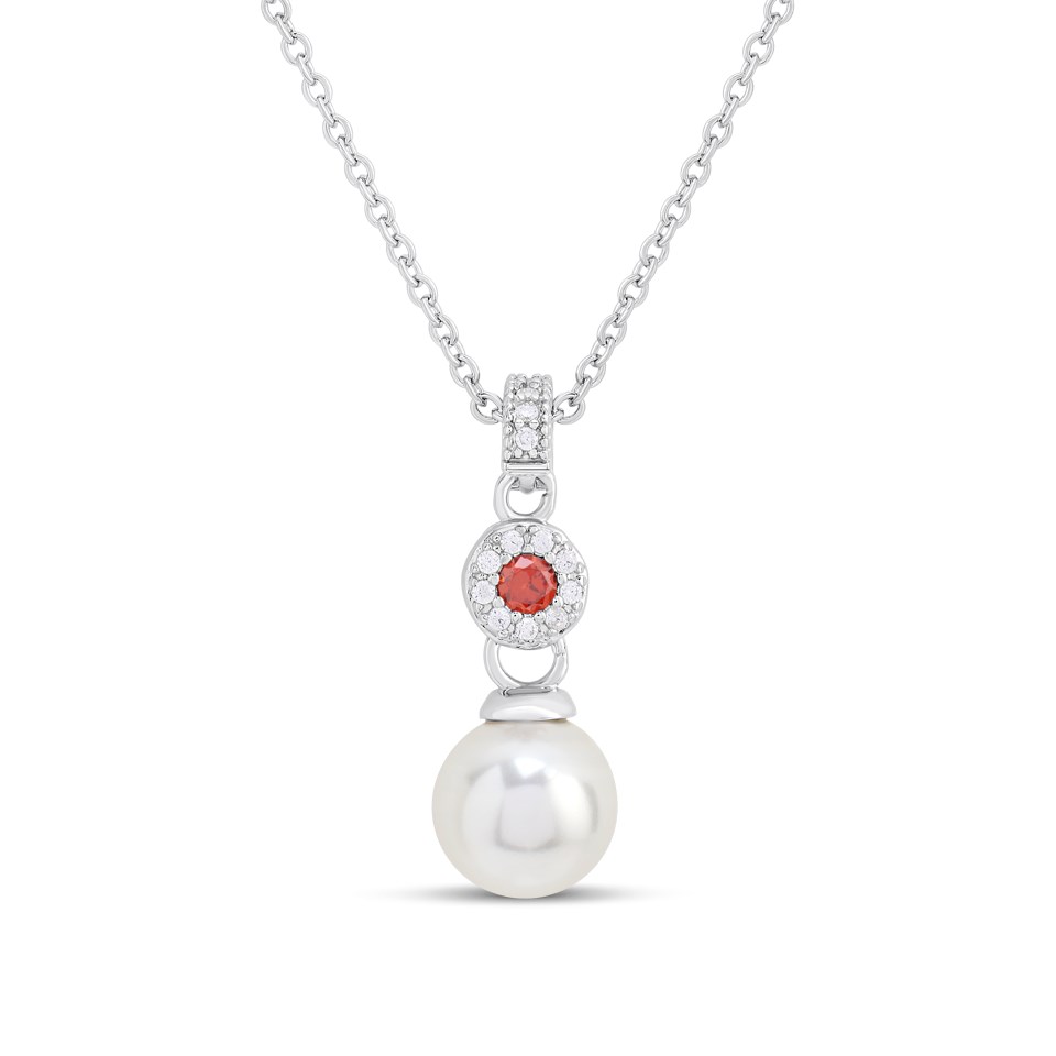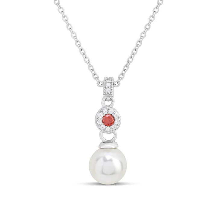 Cachet London Silver Tone Ruby CZ And Pearl Pendant - J74214