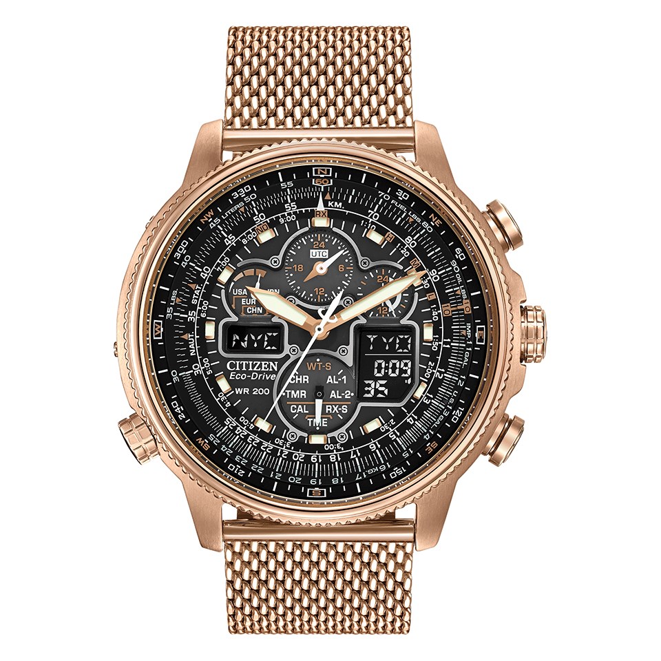 Citizen JY8033-51E Navihawk A.T Rose Tone Mesh Bracelet Watch - W38188