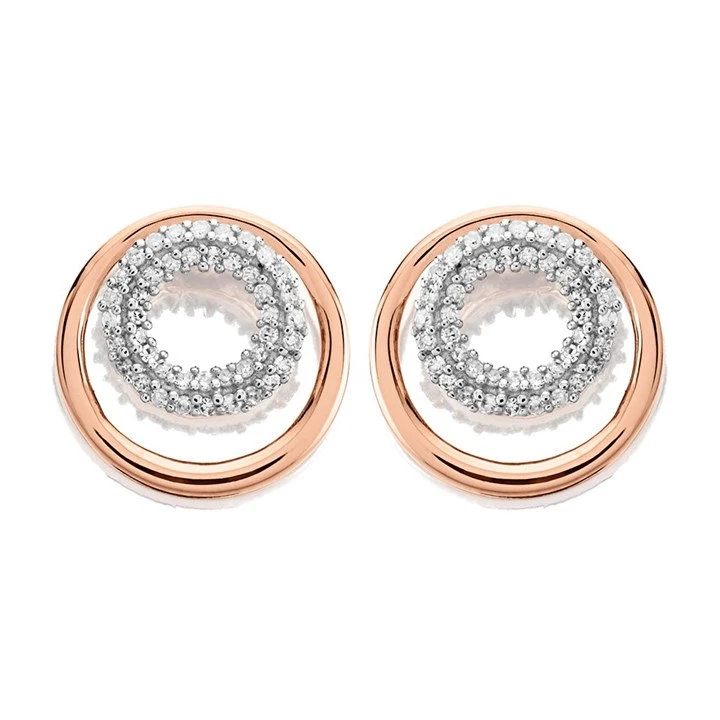 D7853 9ct Gold(RG Plated)Dia-Set Circle (x2) Stud Ears,10pts/pr - D7853