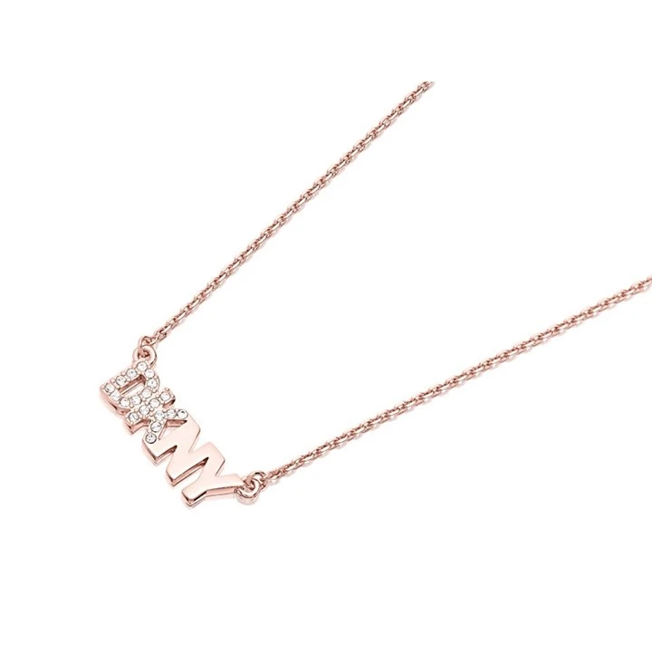 DKNY 60559644-9DH Rose Tone Crystal Logo Necklace - J4622