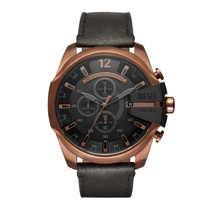 Diesel DZ4459 Mega Chief Black Leather Strap Watch - W11357
