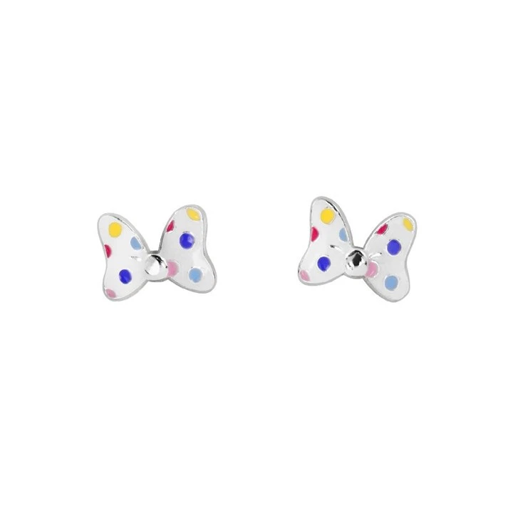 Disney Silver Minnie Mouse Enamel Bow Tie Stud Earrings - F67166