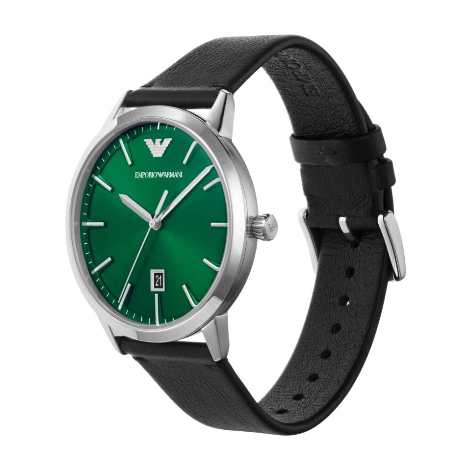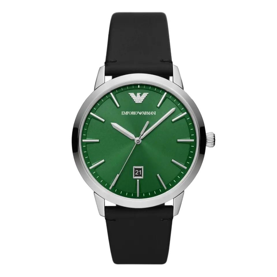 Emporio Armani AR11509 Green Dial Black Leather Strap Watch - W62151