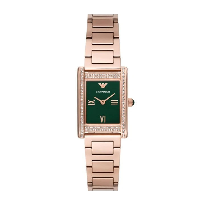 Emporio Armani AR11641 Rose Gold Tone Rectangular Case Green Dial Bracelet Watch - W62231