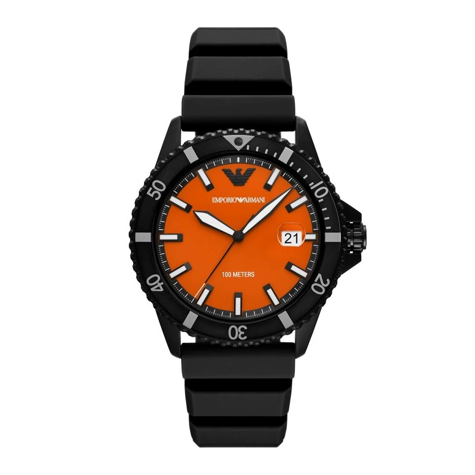 Emporio Armani AR11684 World Explorer Orange Dial Black Silicone Strap Watch - W62225