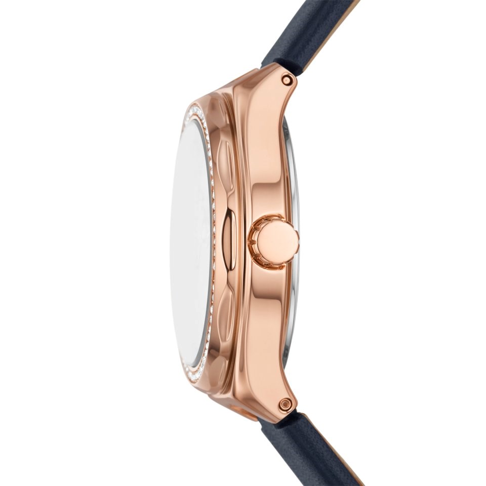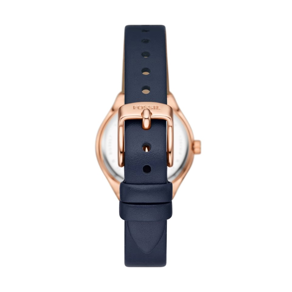 Fossil BQ3956 Eevie Rose Tone Navy Leather Strap Watch - W10471