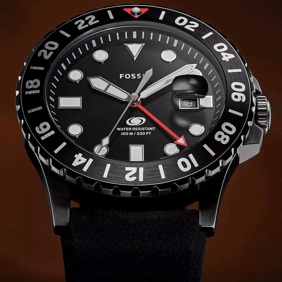 Fossil FS6036 Blue GMT Black Silicone Strap Watch - W10335