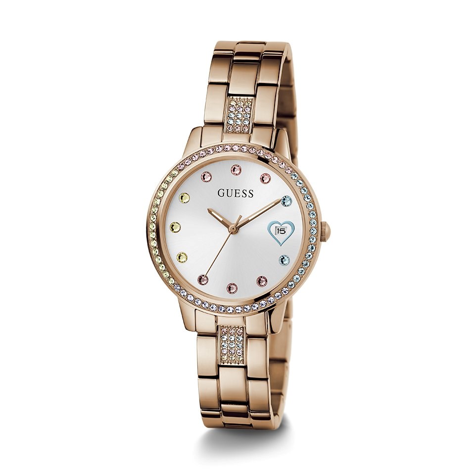 GUESS GW0657L3 Three of Hearts Rose Tone Bracelet Watch - W96434