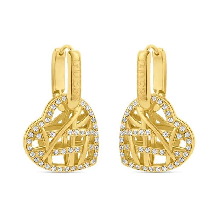 GuessUBE03098YG Gold Tone Heart Cage Huggie Earrings - J42283