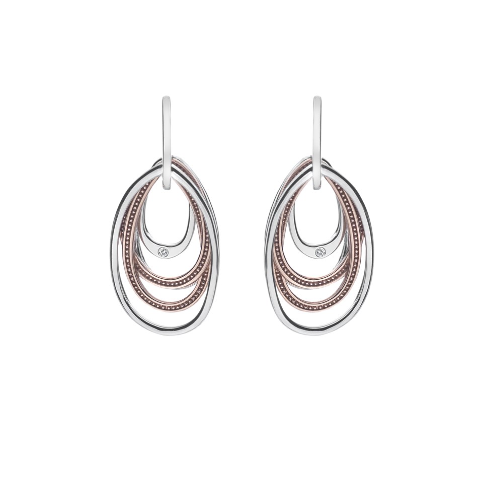 Hot Diamonds DE497 Silver And Rose Gold Plated Drop Earrings - J0401