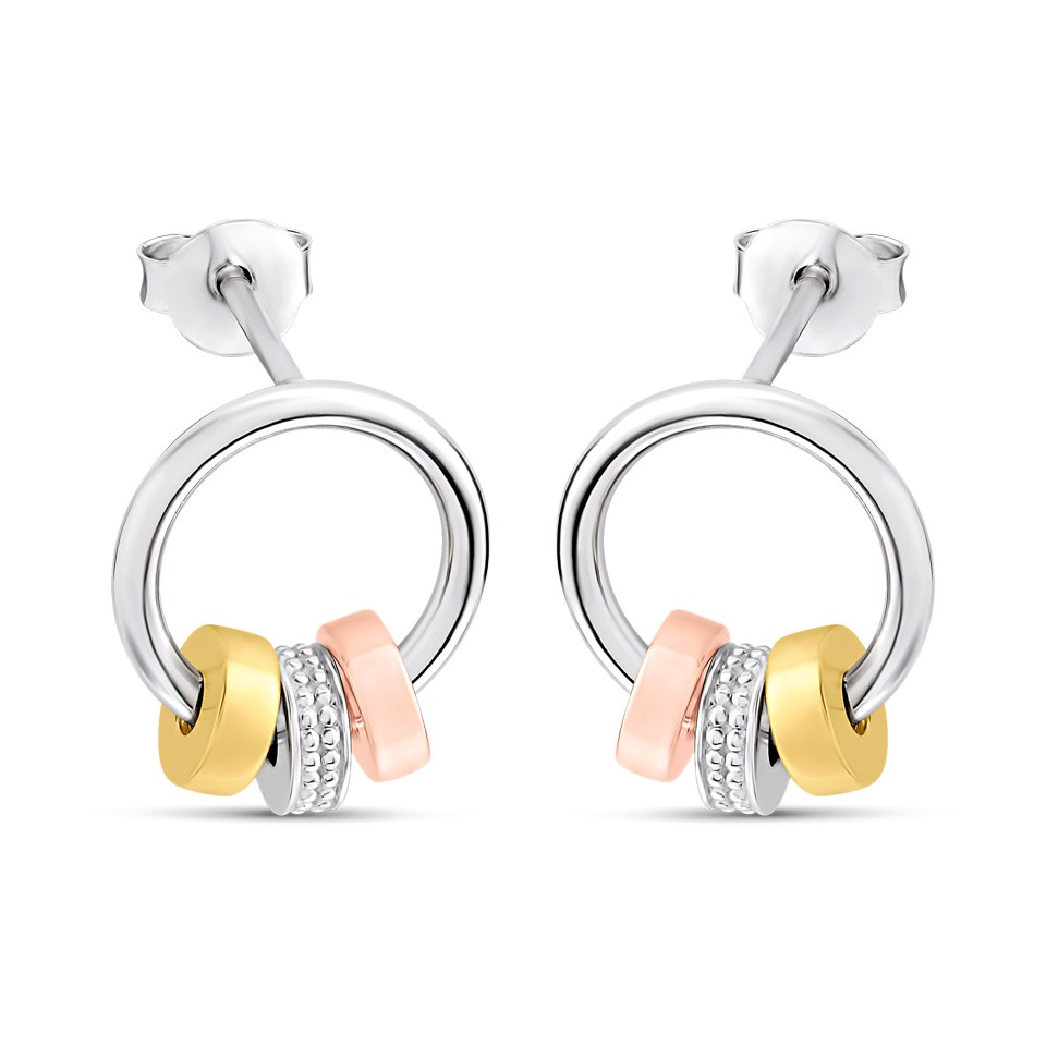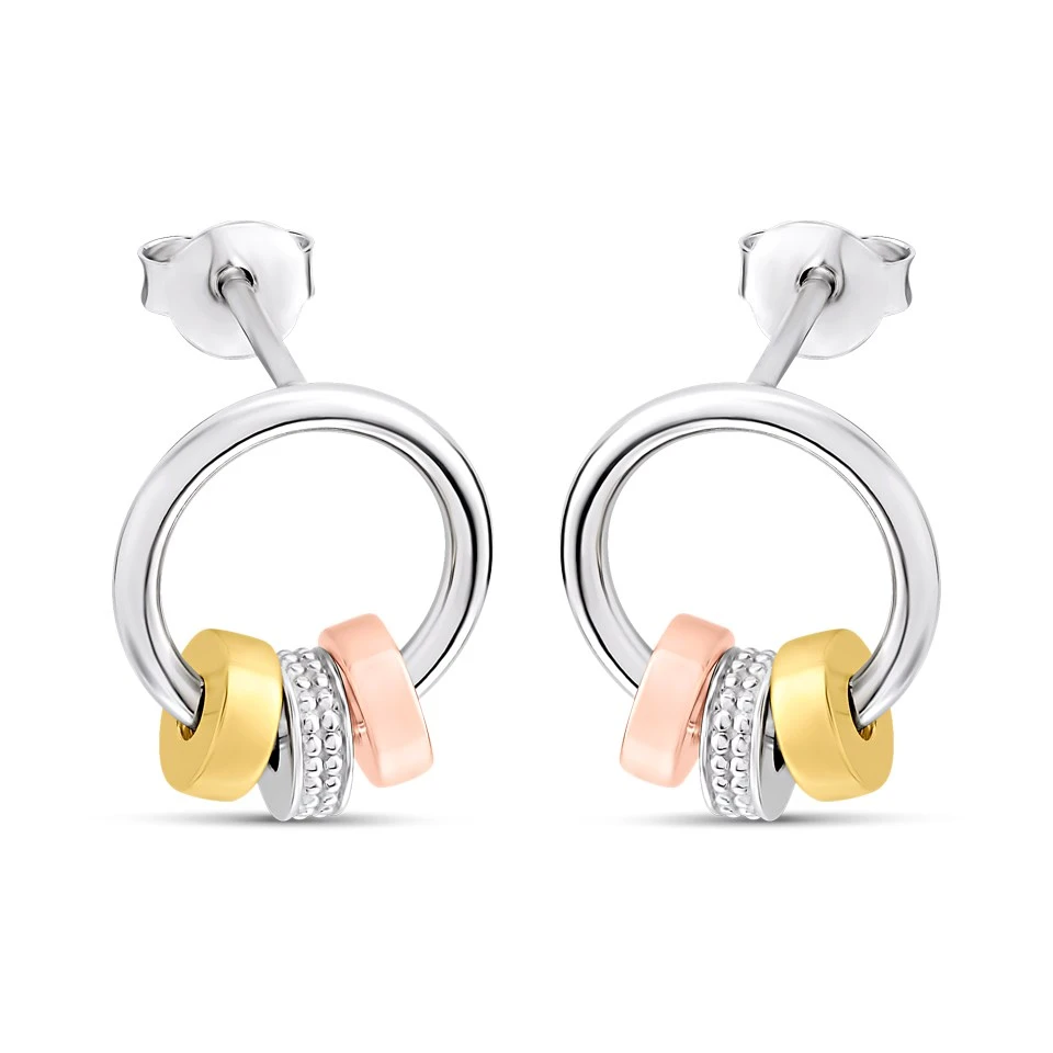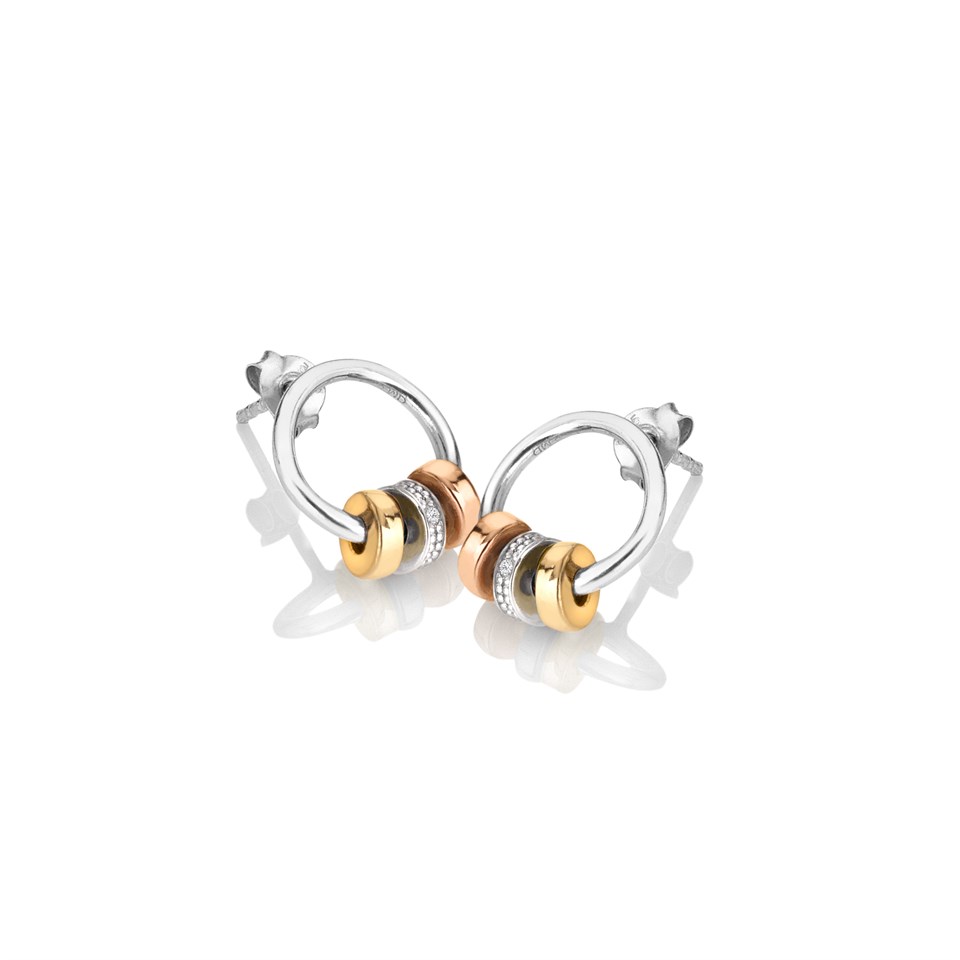 Hot Diamonds Silver And Gold Plated Trio Barrel Earrings - J0451
