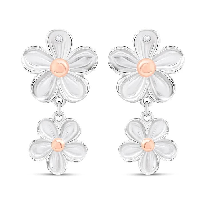 Hot Diamonds Silver &And Rose Gold Plated Forget Me Not Earrings - J0448