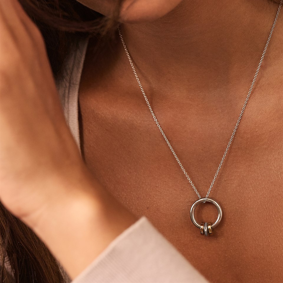 Hot Diamonds Silver & Gold Plated Trio Barrel Necklace - J0457