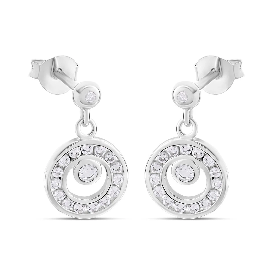 Hot Diamonds Silver Orbit White Topaz Drop Earrings - J0464