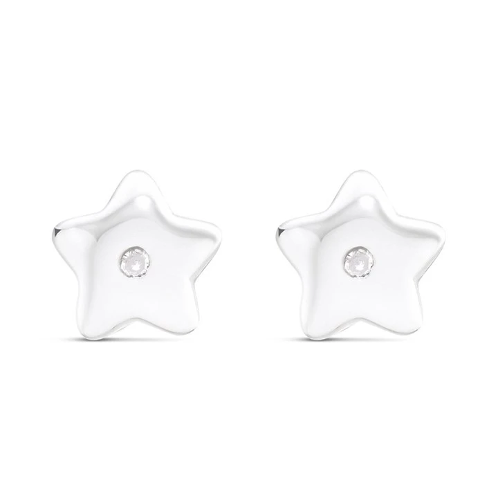 Little Star Silver Diamond Star Stud Earrings - J83141