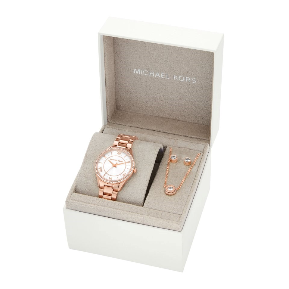 Michael Kors MK4850SET Rose Tone Watch, Necklace And Stud Earrings Gift Set - W08201