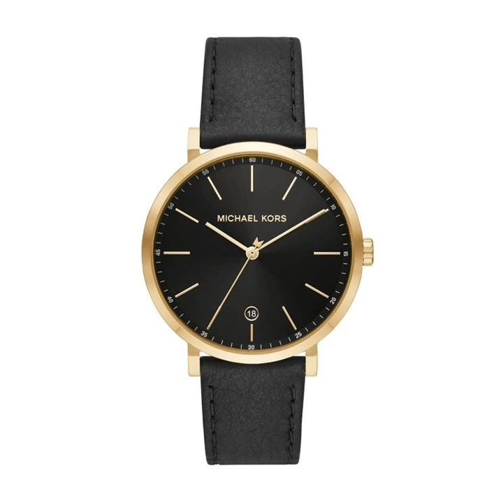 Michael Kors MK8737 Irving Gold Plated Black Leather Strap Watch - W08152