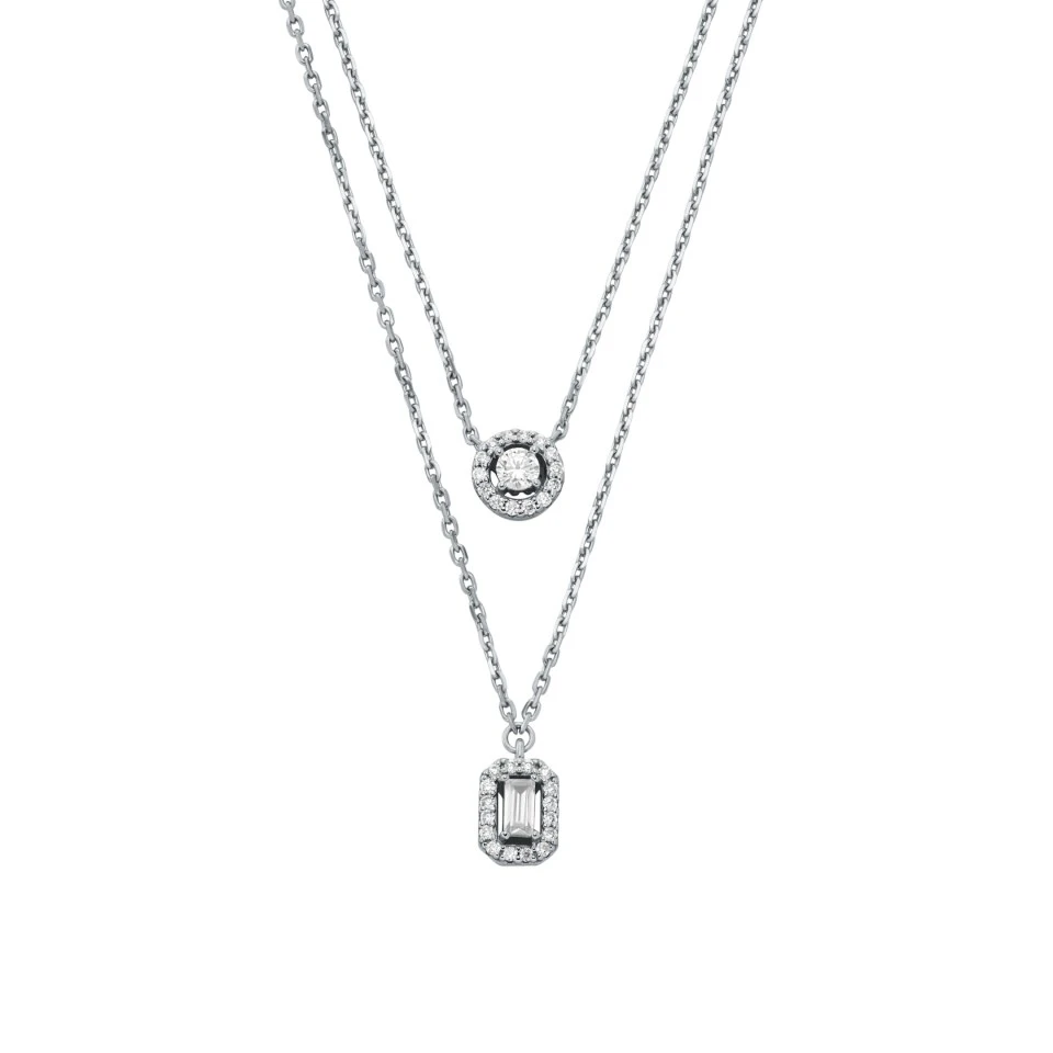 Michael Kors MKC1745CZ040 Silver Double Stone Set Necklace - J94225
