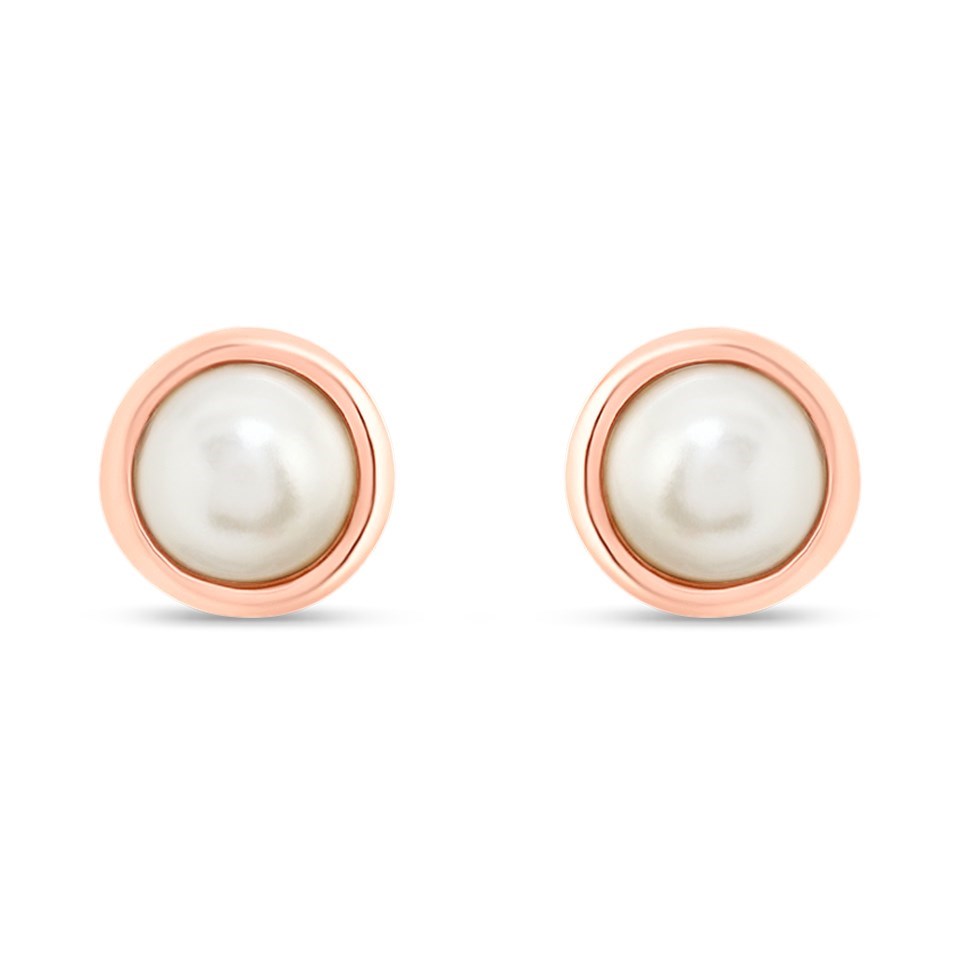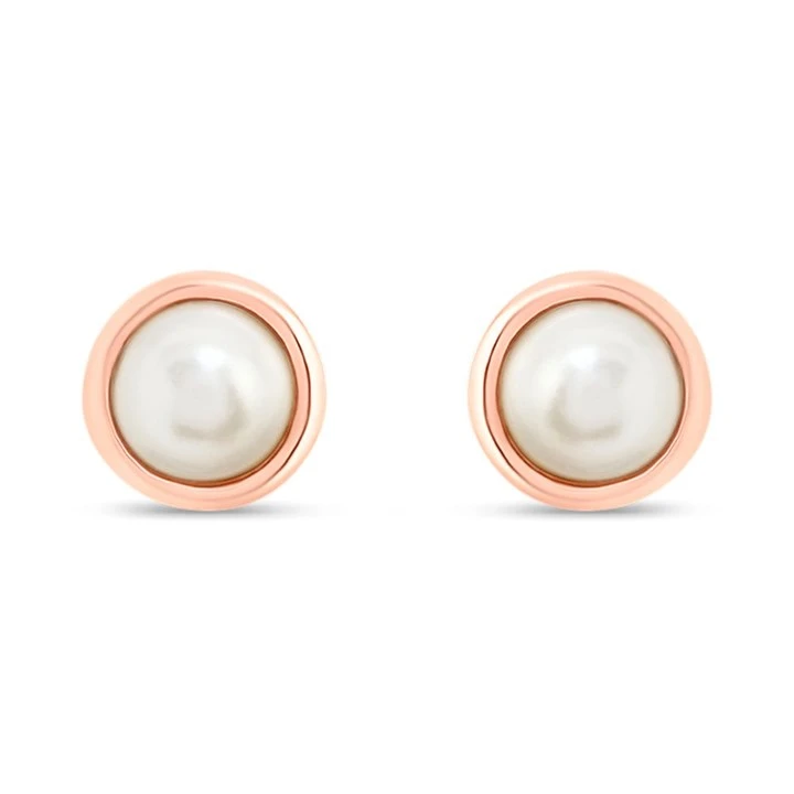 Olivia Burton OBJCOE219 9ct Rose Gold Plated Silver Classic Pearl Stud Earrings - J97101