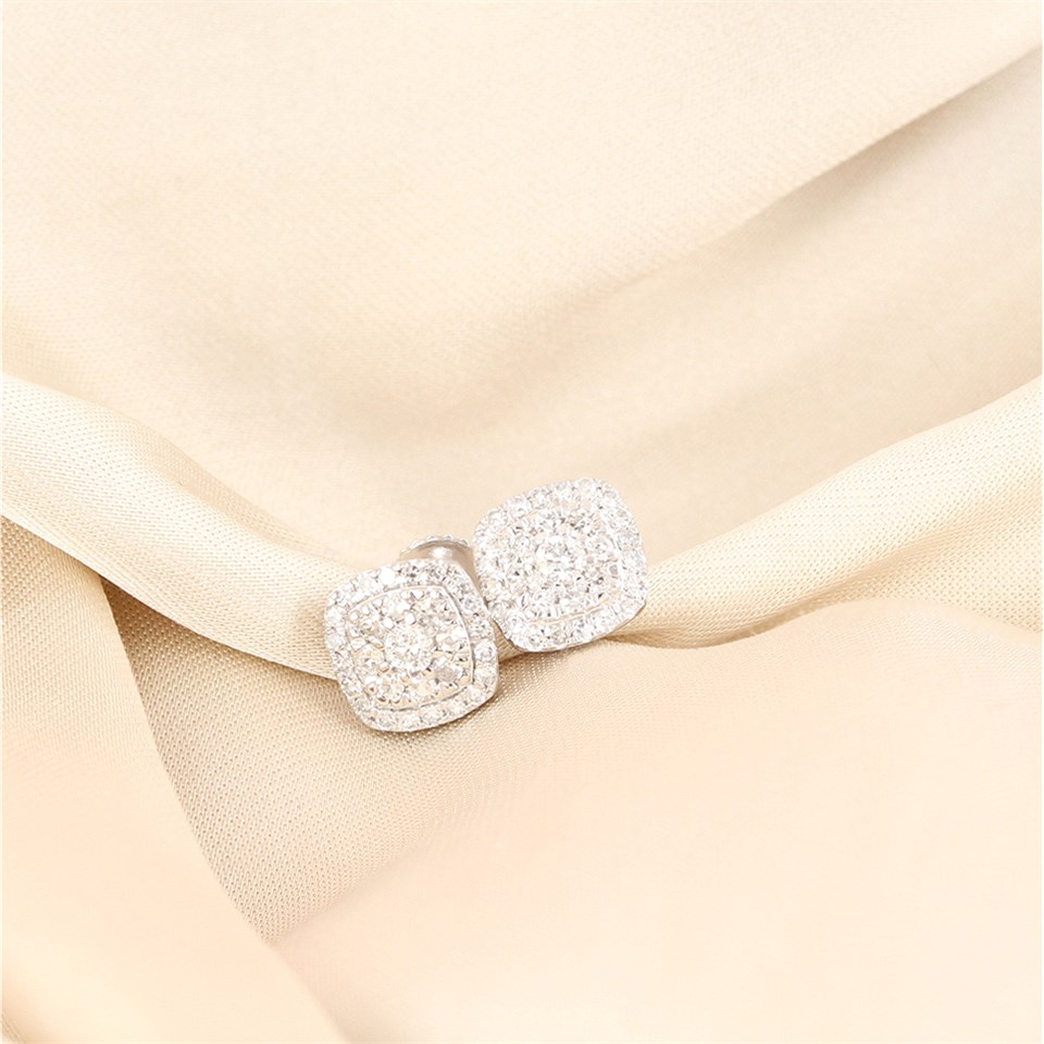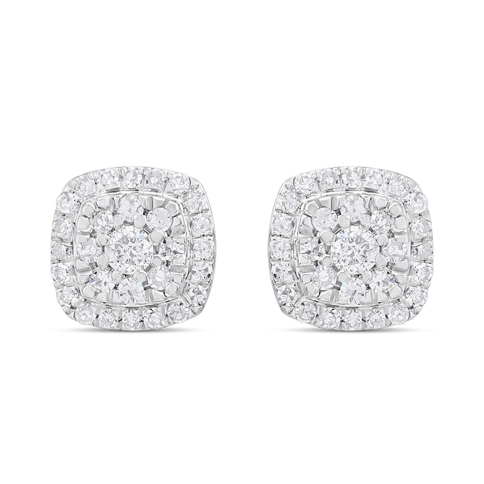 Platinum Cushion-Shaped Diamond Cluster Studs Earrings, 1/4ct/pr - D08502