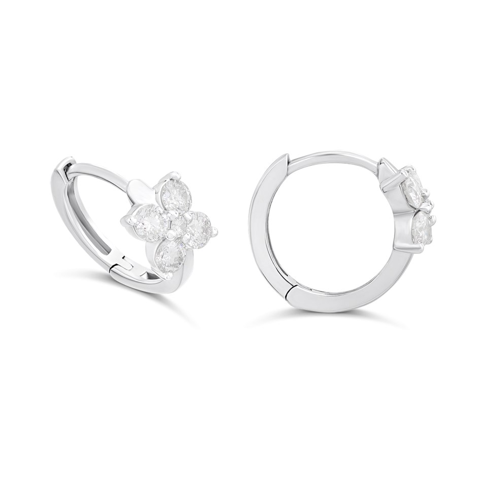Platinum Diamond-Set Clover Huggie Earrings, 1/2ct/pr - D08501