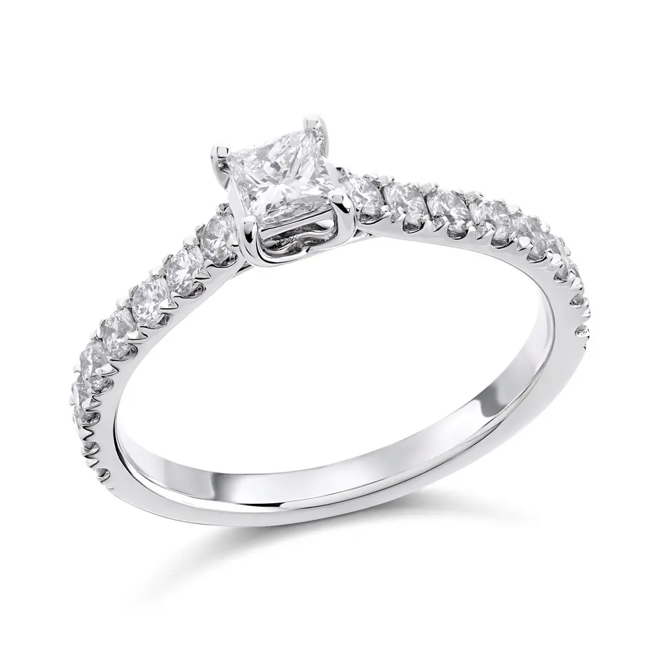 Platinum Princess Cut Diamond Engagement Ring - 3/4ct - AGI Certificated - d08121
