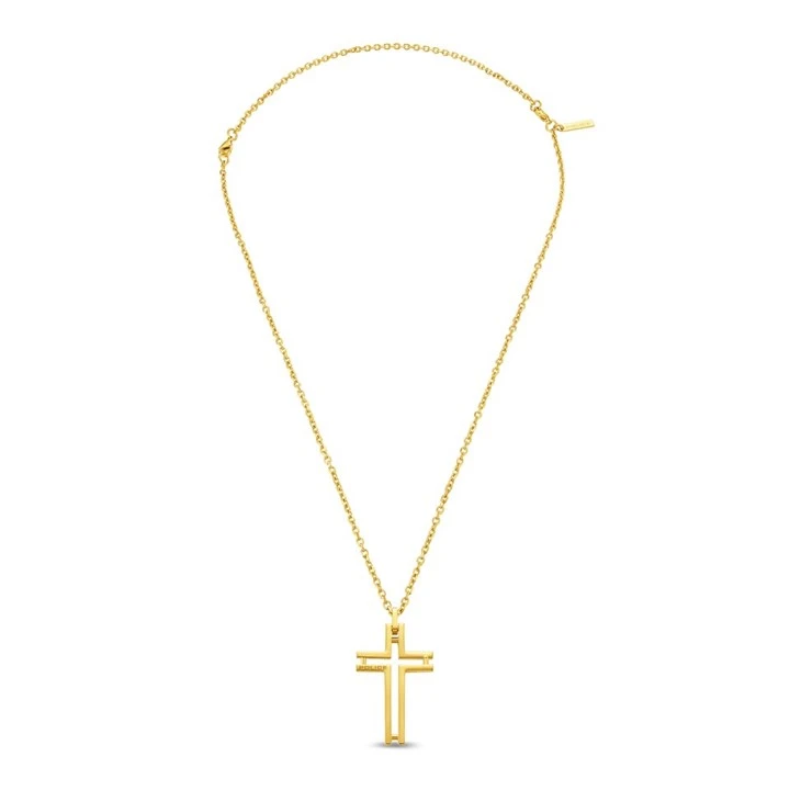 Police PEAGN0005306 Gold Tone Cut-Out Cross Necklace - A98340