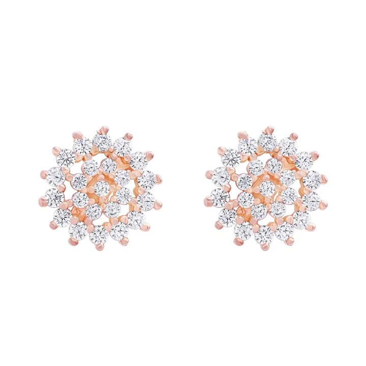 Rose Gold Plated Silver Cubic Zirconia Stud Earrings - 10mm - F04175