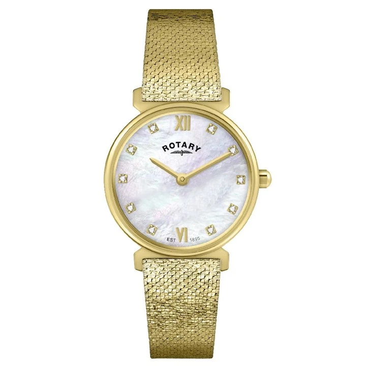 Rotary RLB10022/07 1895 Gold Tone Mother Of Pearl Stone Set Dial Mesh Bracelet Watch - W64242