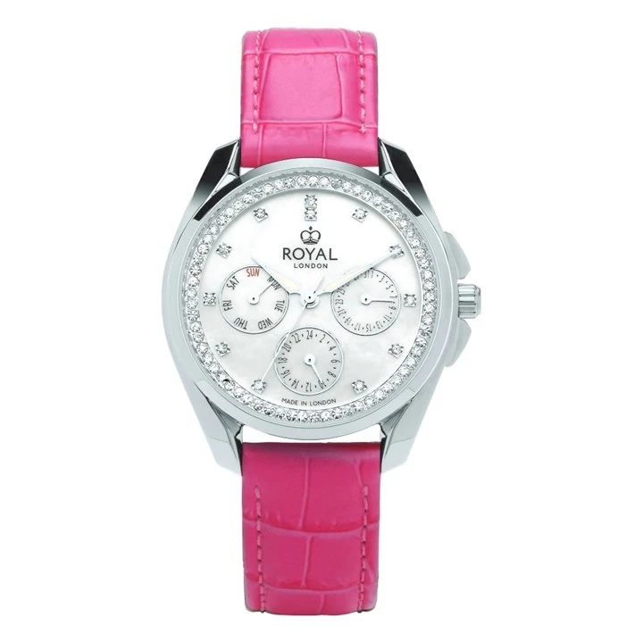Royal London 21432-04 Stone Set Pink Leather Strap Watch - W61145